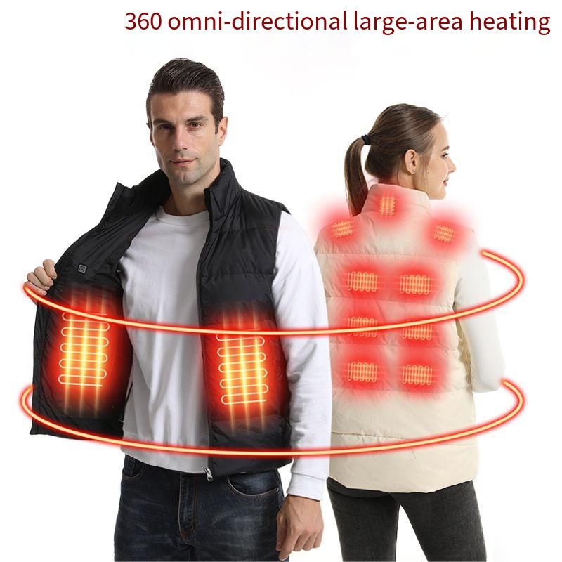Nuovo gilet riscaldato elettrico intelligente con collo alto e riscaldamento USB per esterni