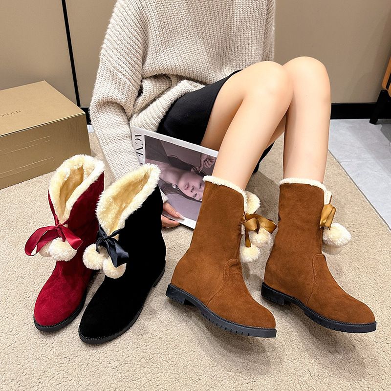 Nuovo inverno dolce fiocco palla di pelo corto scarponi da sci da donna peluche comode calde scarpe di cotone