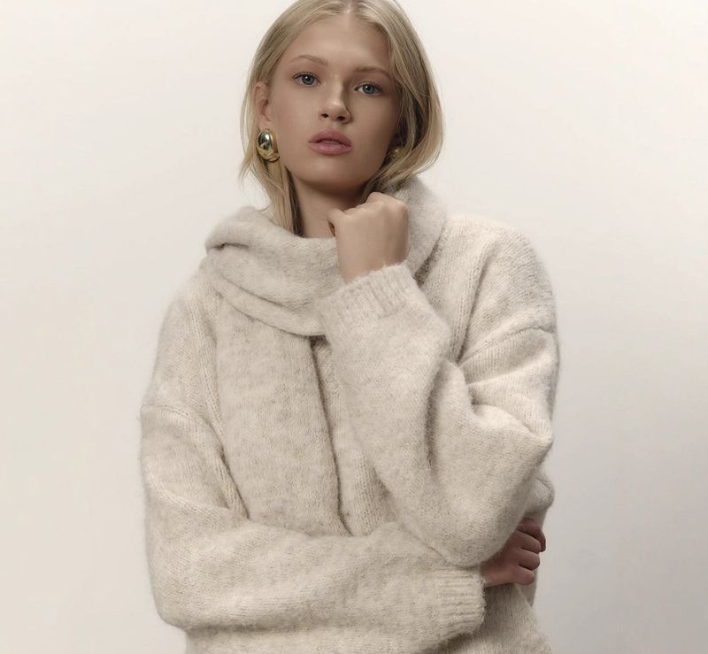 Nuovo maglione pullover con scollo a V lavorato a maglia per donna con sciarpa, morbido e alla moda, versatile per autunno inverno