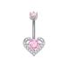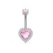 Nuovo piercing all'ombelico in acciaio inossidabile rosa a 6 griffe, stile transfrontaliero, con cuore e zircone a farfalla