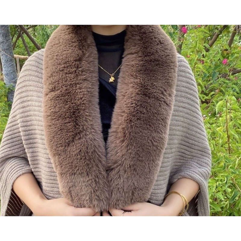Material: Rabbit fur collar+imitation cashmere knit