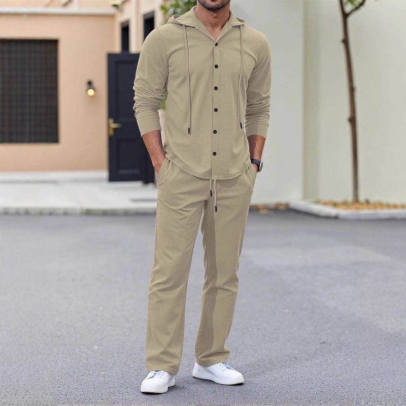 Nuovo set con cappuccio a maniche lunghe in lino, autunno, casual, cardigan in cotone e lino