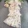 Nuovo set di due pezzi in primavera con stampa retrò di alta qualità, stile delicato, camicia con maniche a lanterna e gonna di media lunghezza in chiffon stampato
