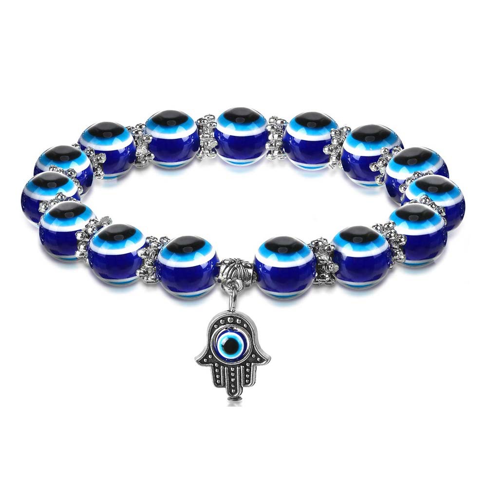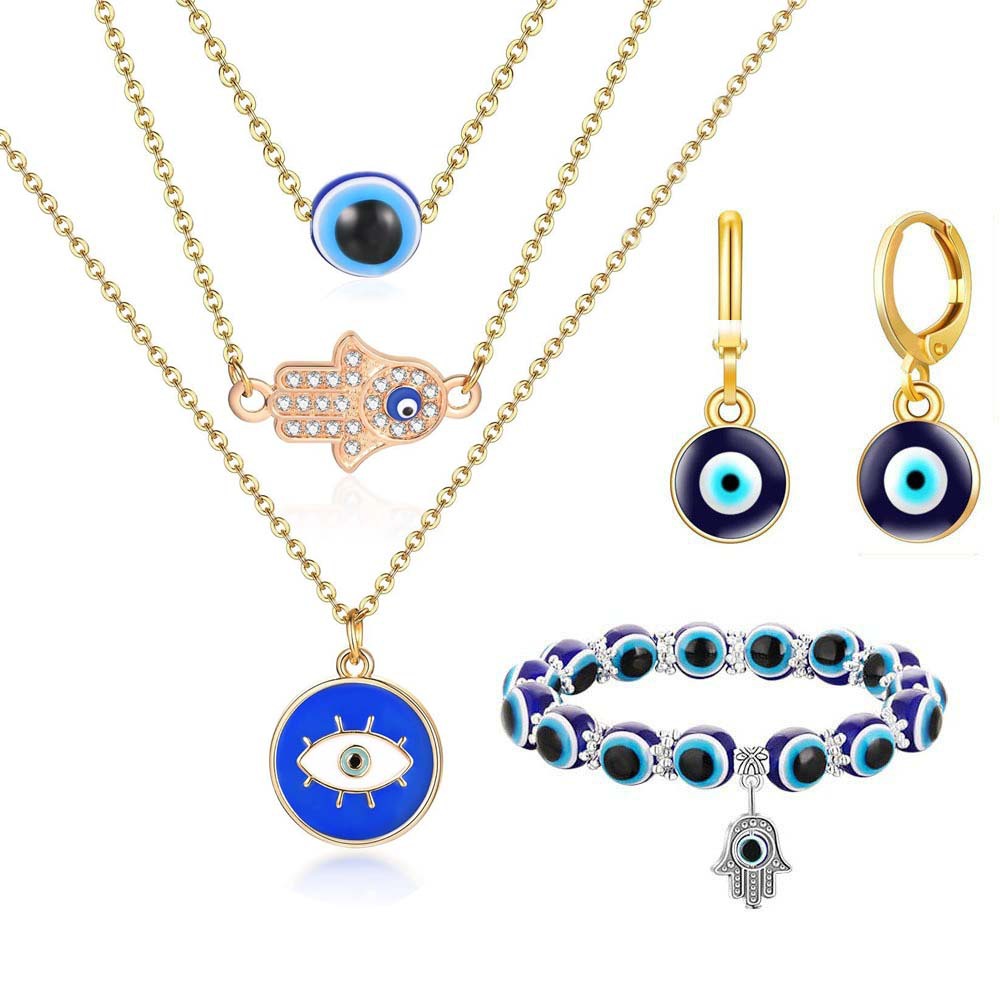 Nuovo set di orecchini pendenti con occhio del diavolo in smalto blu Türkiye, perline, bracciale in corda intrecciata a mano