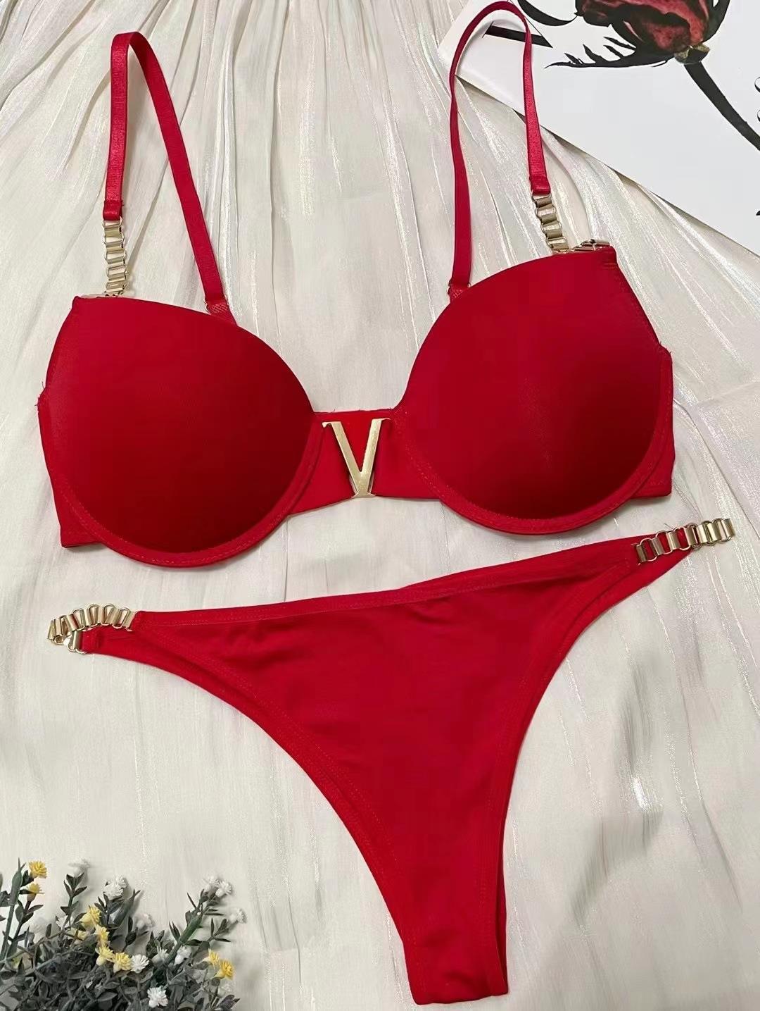 New Sexy Smooth European Size Underwear Women's Bra Ring Decoration Shoulder Strap Bra Set