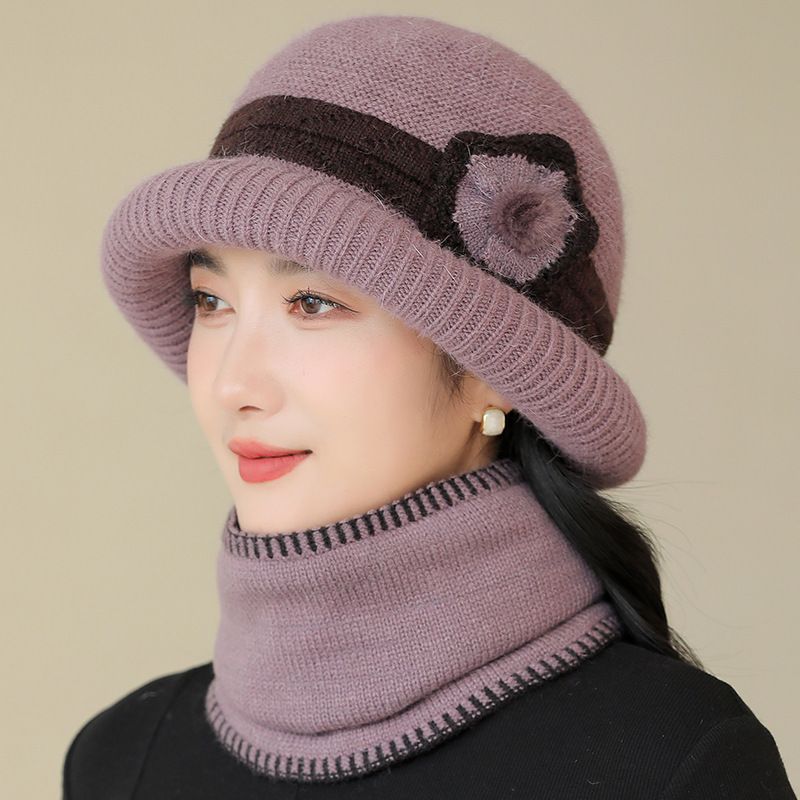 New Style Knitted Hat for Middle-aged and Elderly Women, Ear Protection, Warm Knitted Bucket Hat, Stylish Curled Brim, Fleece-lined Granny Hat