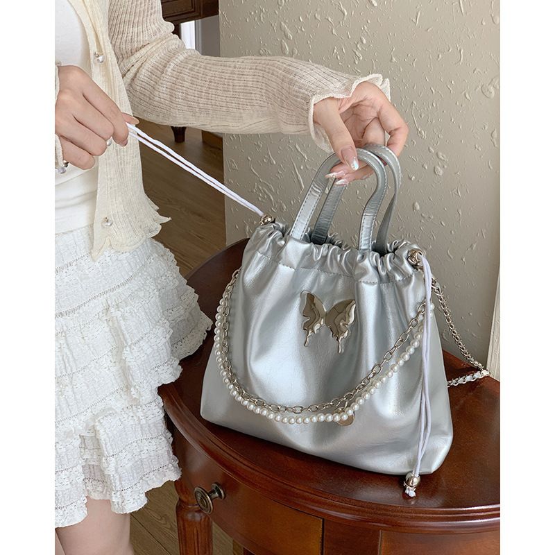 Nuovo zaino coreano con catena di perle e farfalla in argento da donna, nuovo stile Tide, per il tempo libero, Hundred And One