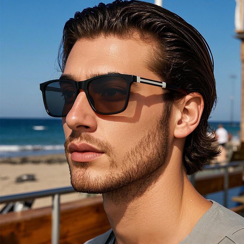 Occhiali da sole neri con protezione solare estiva alla moda, con specchietti polarizzati, nuovi per uomo, 2025