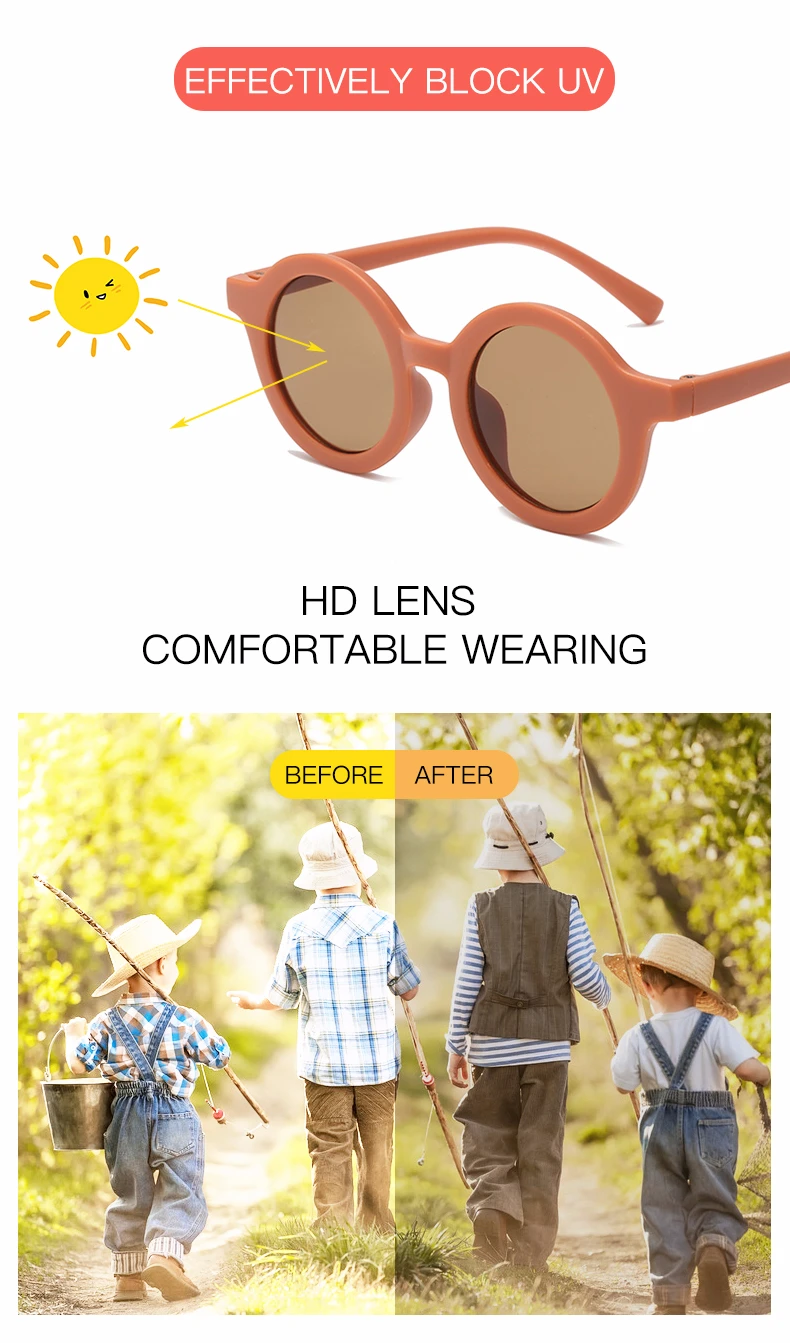 Classic Fashion Rounds Children Sunglasses Baby New Plastic Boys and Girls Vintage Mirror Kids Out Door Sun Glasses Uv400