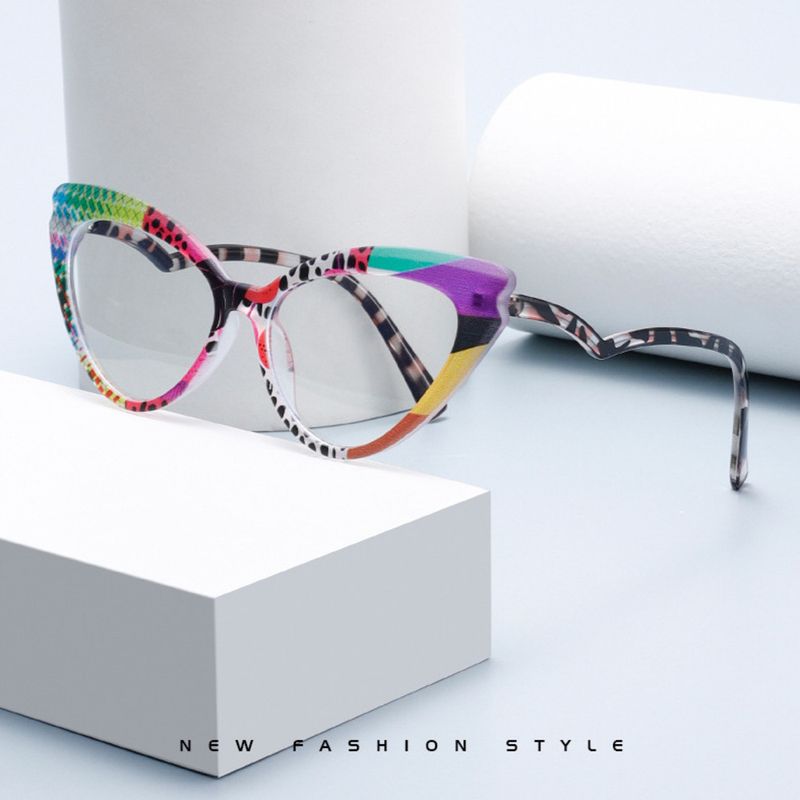 New Style Floral Cat Eye Plain Glasses Frame Fashion Anti-Blue Light Non-Prescription Glasses BL916