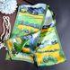 Sciarpa a doppio strato con nastro da collo in seta di gelso, stretta e lunga, con campo di grano verde dipinto a olio