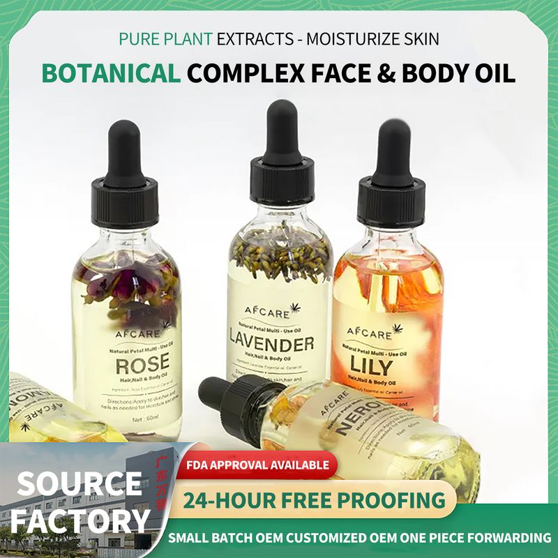 Olio essenziale per la cura della pelle con fiori secchi e piante composte, idratante per il corpo e per il massaggio
