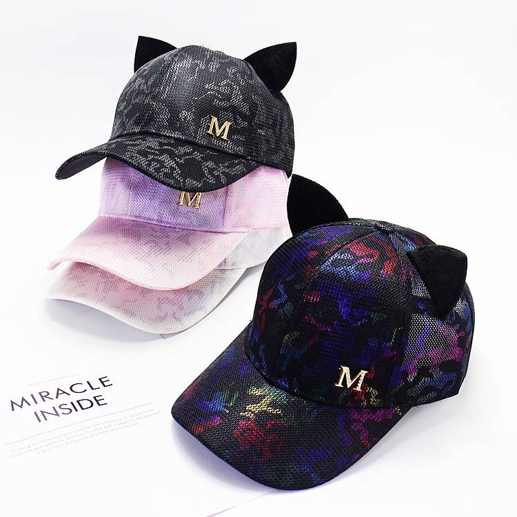 Cute Sequins Cat's ears (Steamed cat-ear shaped bread) Baseball Hat Female Summer Versatile Student Cartoon Duck Tongue Hat Sunshade Net Hat Spring
