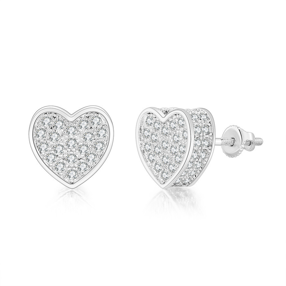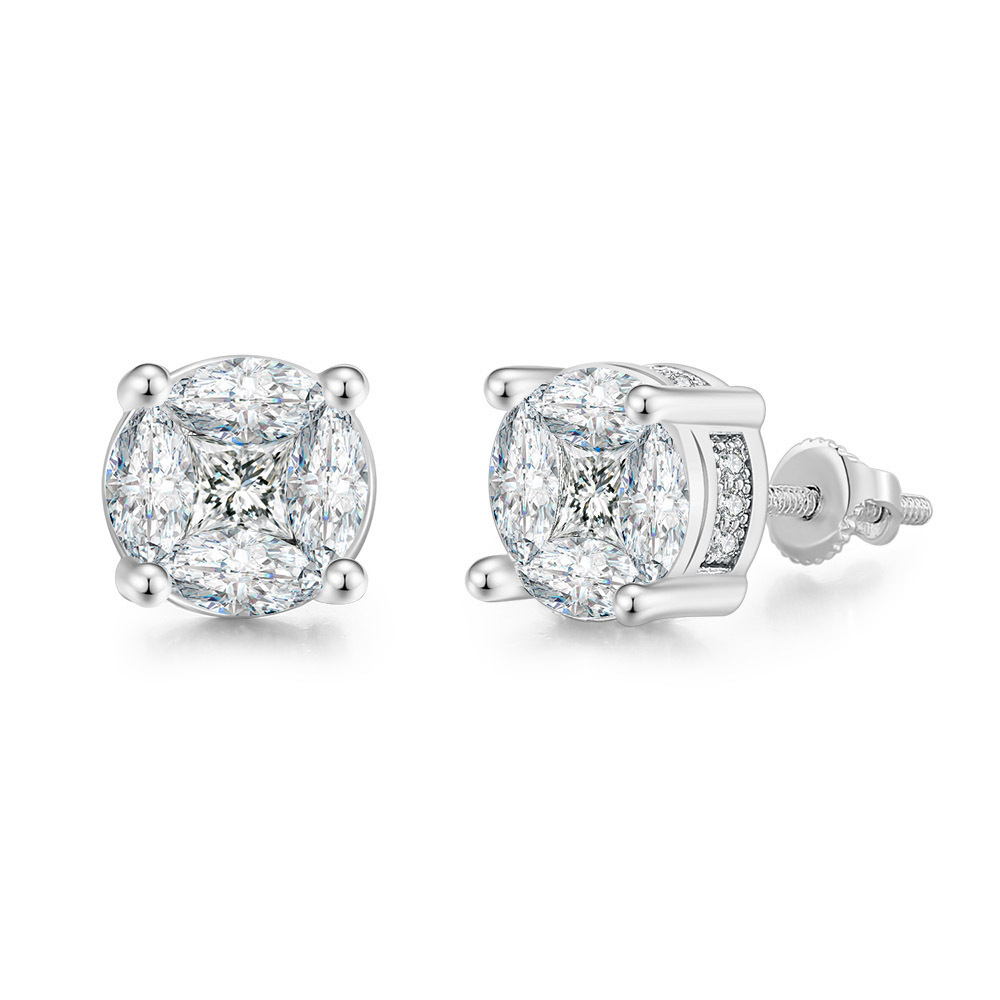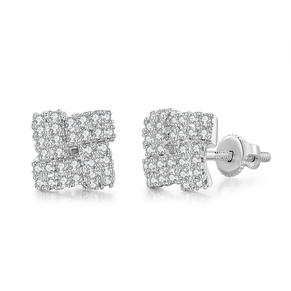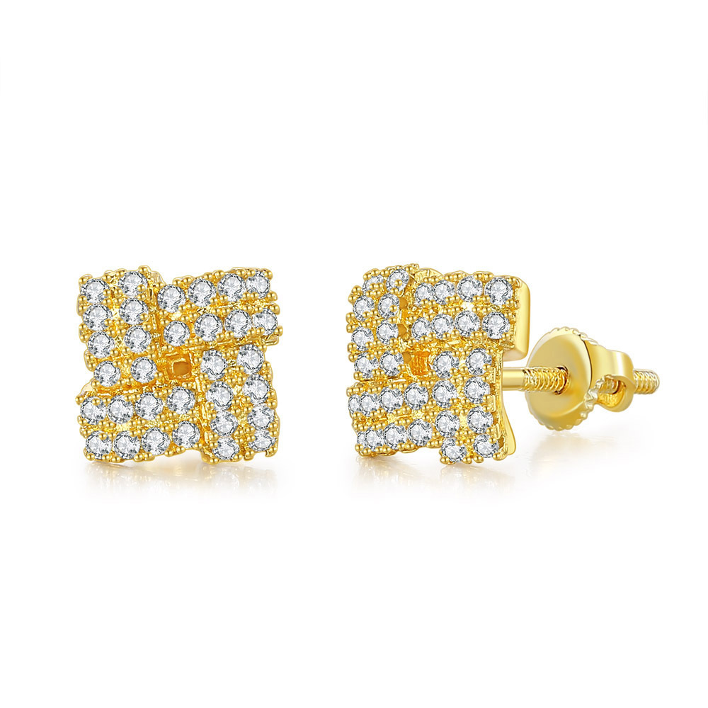 Orecchini a bottone Hip Hop popolari con zirconi, orecchini a bottone filettati placcati in oro con diamanti da uomo e da donna