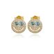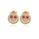 Orecchini a bottone in zircone con faccina sorridente per uomo e donna in stile hip hop, design accattivante con finitura placcata in oro e perni in argento 925
