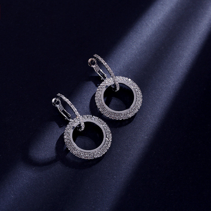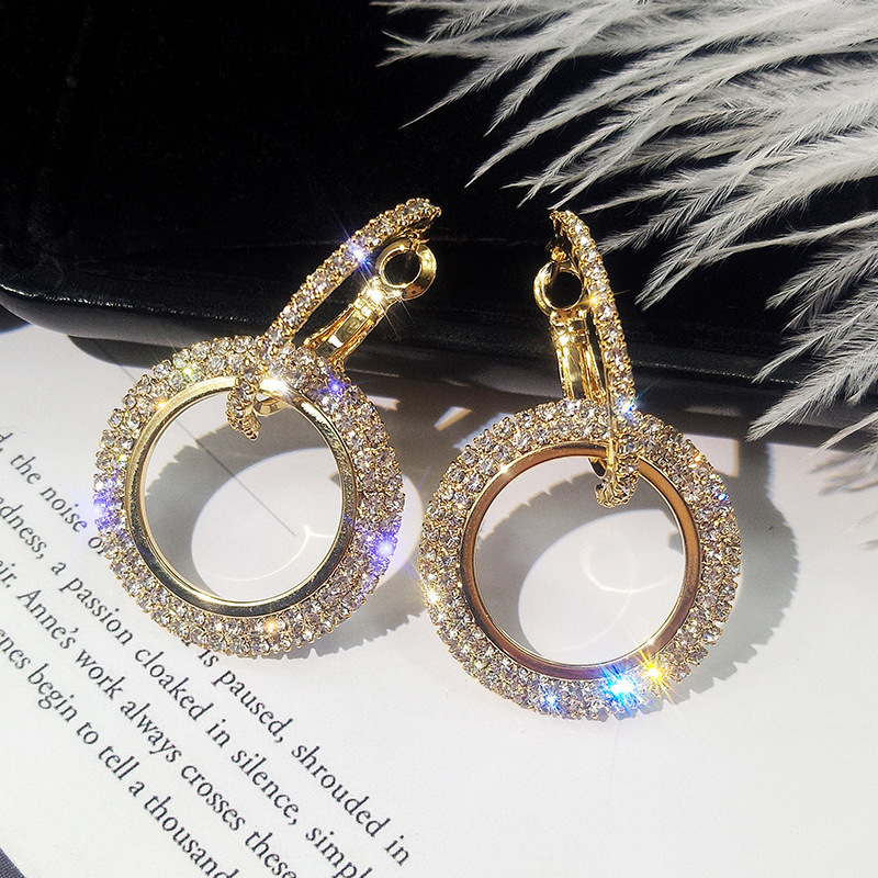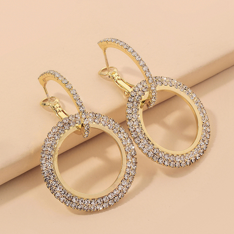 Orecchini a cerchio geometrico creativo con diamanti intarsiati Orecchini super lucidi con nappe di temperamento Orecchini a doppio anello esagerati