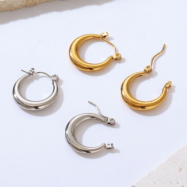 Orecchini a cerchio in acciaio inossidabile placcato oro, minimalisti, classici europei e americani, di alta qualità