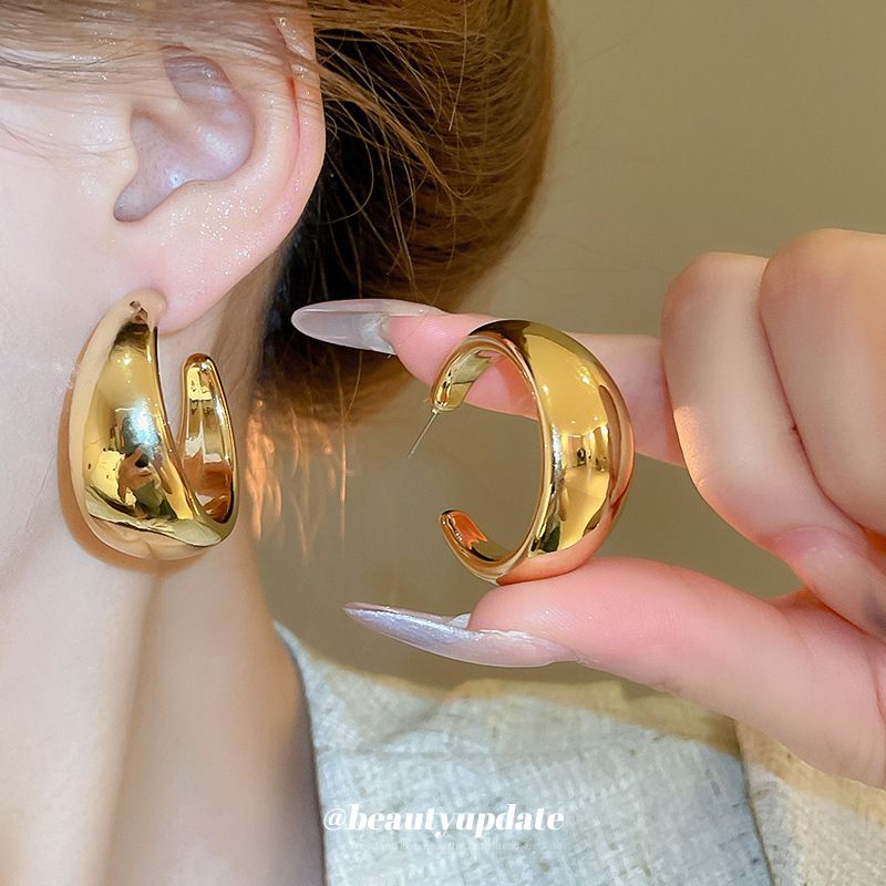 Orecchini a cerchio in acrilico lucido a forma di C con bordo largo Silver Needle, eleganti e semplici, gioielli per le orecchie di alta qualità