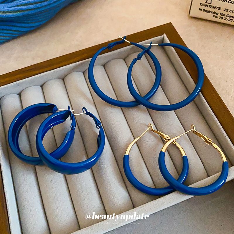 Orecchini a cerchio rotondi semplici in argento con ago Klein blu per donna, eleganti orecchini alla moda con un tocco di lusso.