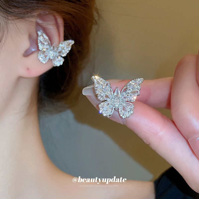 Orecchini a clip alla moda, stile dolce e alla moda, con polsino leggero in zircone a farfalla non forato, di lusso e di nicchia