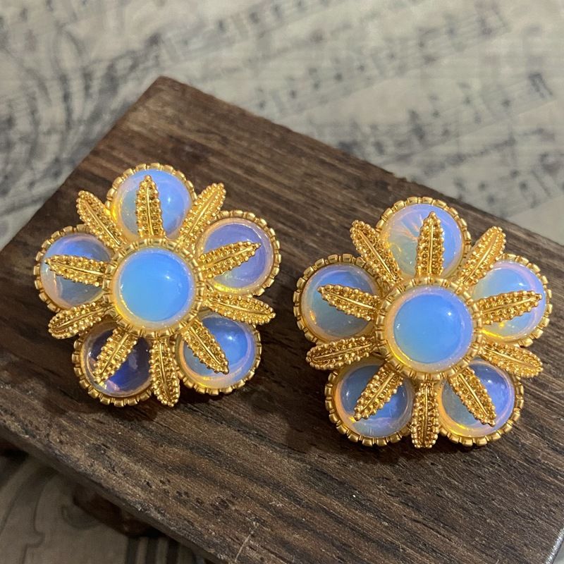 Antique Protein Glass Classic High Order Earrings Fashionable and Advanced Double Layer Flower Earrings and Earrings for Women
