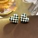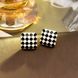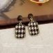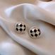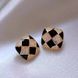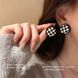 Orecchini ad ago in argento, eleganti orecchini a quadri bianchi e neri, design di nicchia, orecchini a bottone versatili
