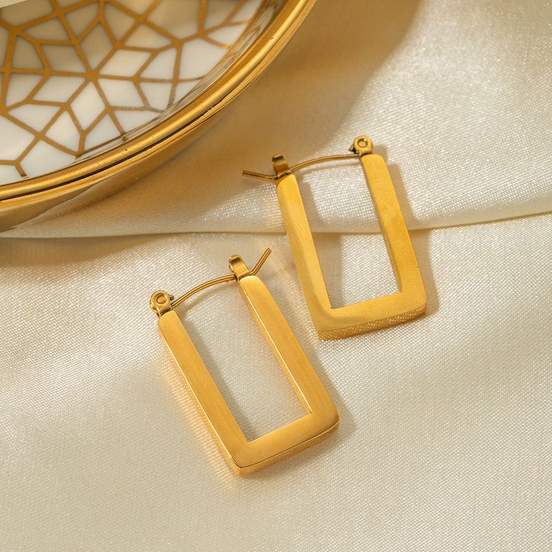 Orecchini ad anello in acciaio inossidabile 316L placcato oro con motivo geometrico quadrato grande in titanio INS da donna_voghion.com