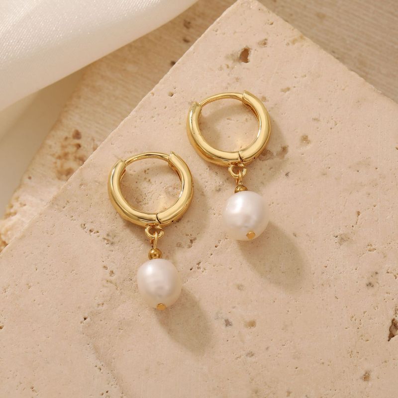 Orecchini con fibbia in perla, pendenti leggeri di lusso, orecchini placcati in rame, orecchini in vero oro, orecchini da sposa da donna