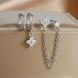 Orecchini da donna in tre pezzi unici, placcati in oro, con borchie a forma di nappa, micro pavé di zirconi