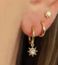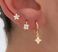 Orecchini di lusso con stelle e farfalle in zircone, placcati in oro vero e proprio, molto richiesti. Set di tre pezzi.