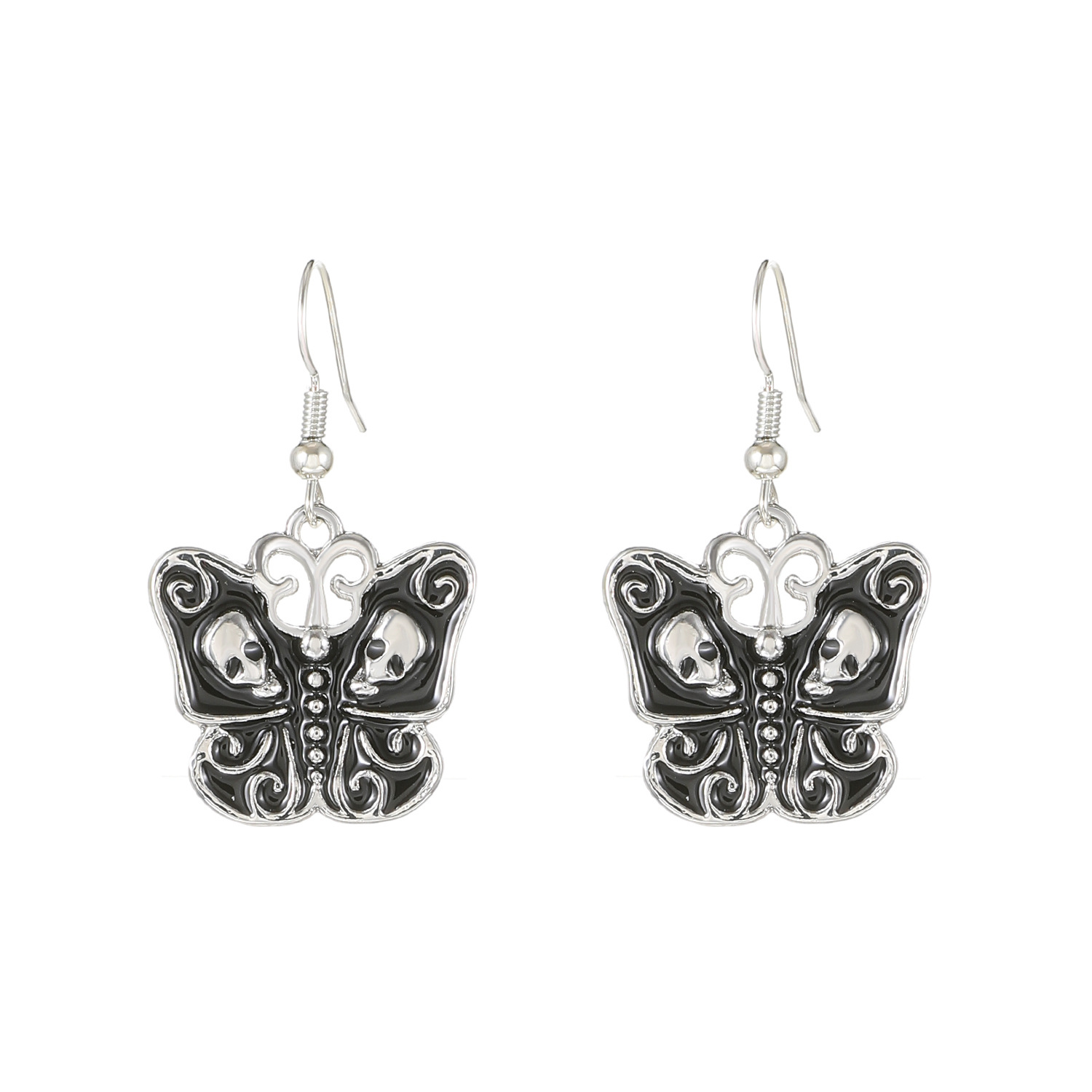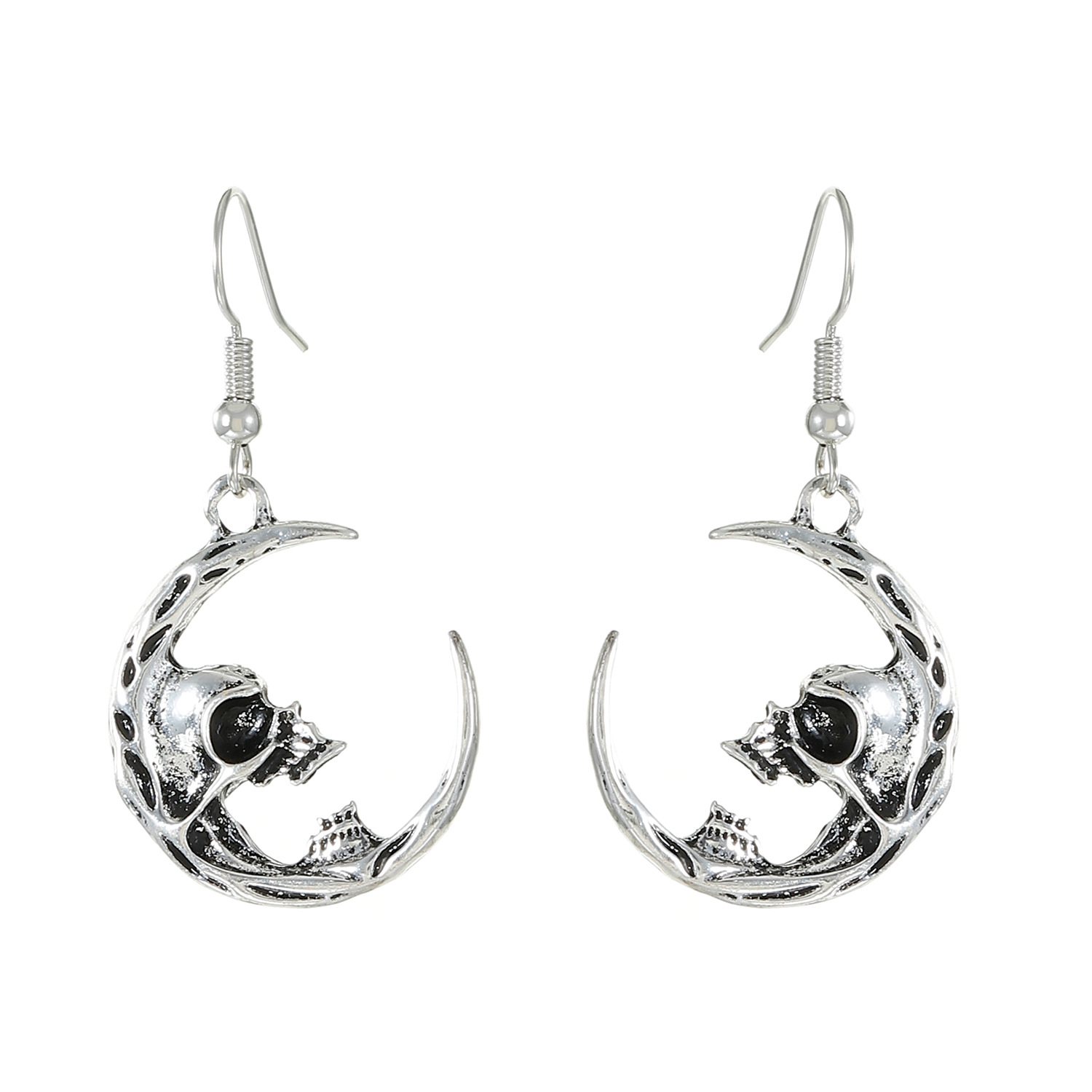 Orecchini gotici scuri a forma di mezzaluna con scheletro, in lega, esagerati, a forma di farfalla, per Halloween