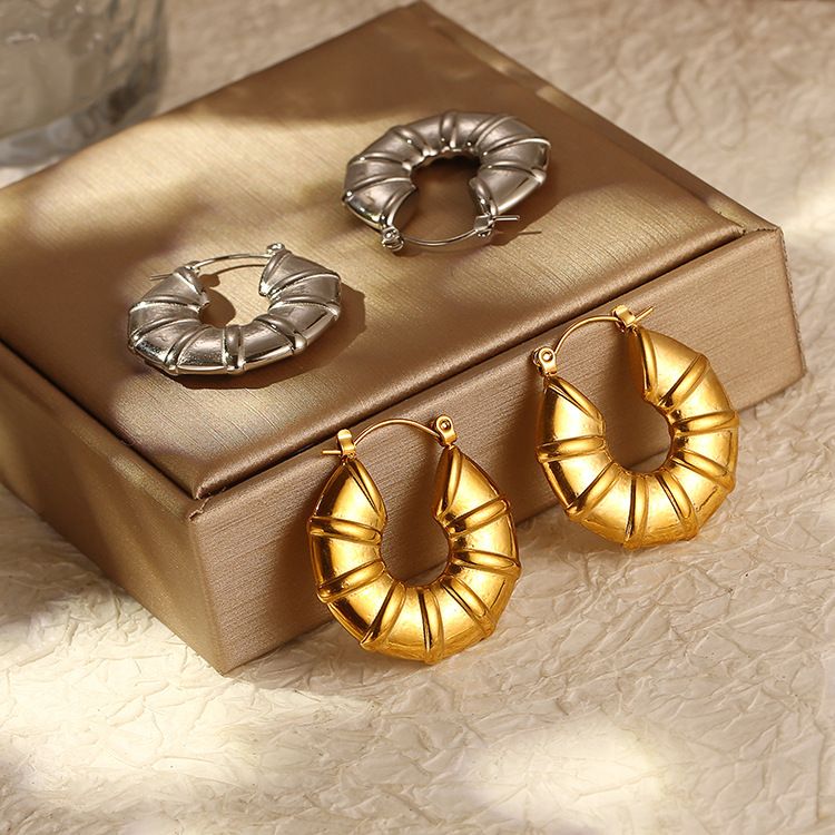 Orecchini in acciaio inossidabile di bambù massiccio alla moda europea e americana transfrontaliera, orecchini semplici di alta qualità da donna alla moda all'ingrosso