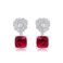 Orecchini in argento S925 con rubini coltivati intarsiati, orecchini con fiori di rosa simulati, luce alla moda e lusso