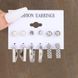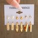 Orecchini in metallo con perle geometriche quadrate e cerchi in stile Hepburn, set da 6 pezzi