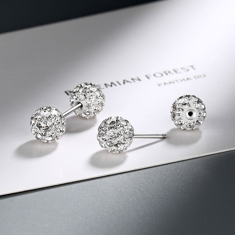 Orecchini in seta filettati per donna, fibbia a torsione, doppia testa, anti-caduta, perline rotonde, strass, osso Shamballa, no