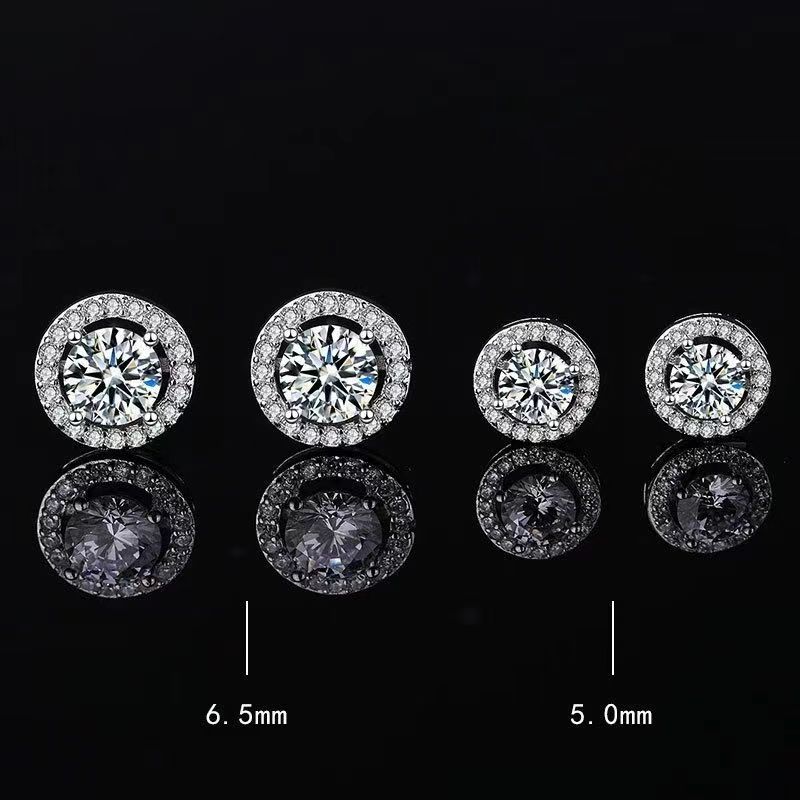 Live streaming super flash men and women round pack earrings, one carat 50 minute threaded earrings, give your girlfriend a gift