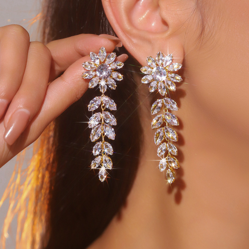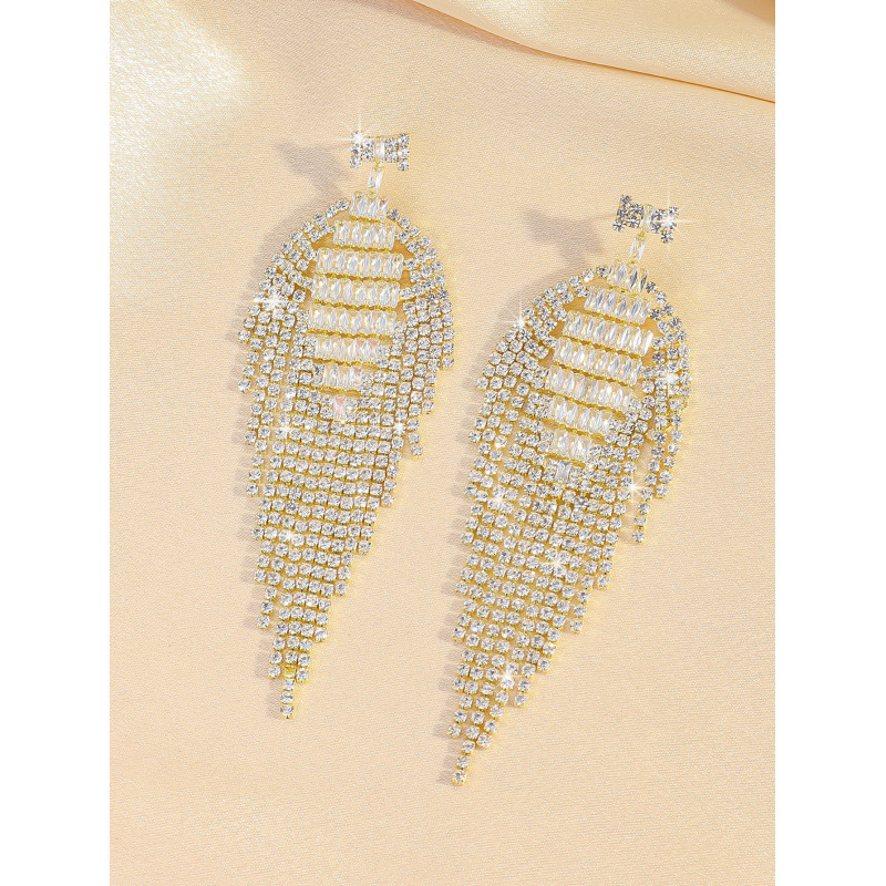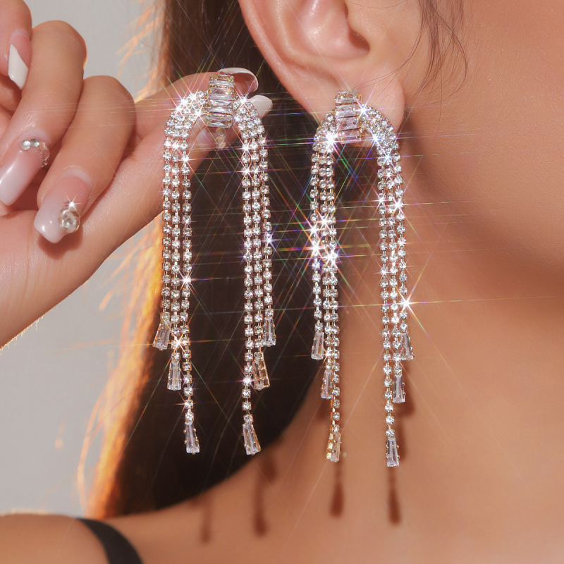 orecchini lunghi con nappe e strass in zircone super flash di alta qualità per le donne, orecchini alla moda dal temperamento