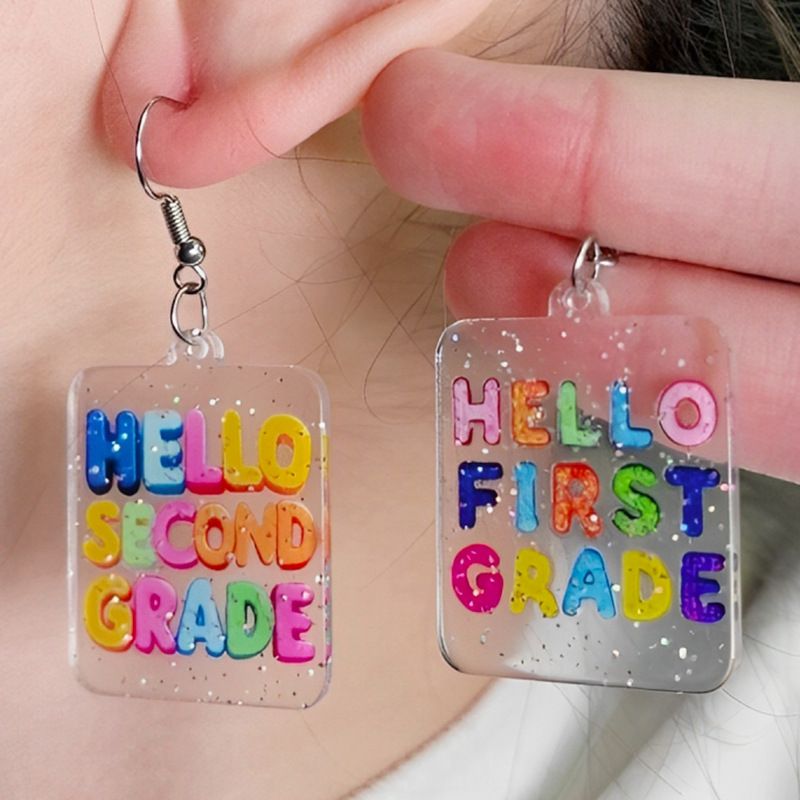 Creative Teacher's Day Earrings Transparent English Grade Acrylic Stud Earrings Simple Fashion Earrings Jewelry for Women