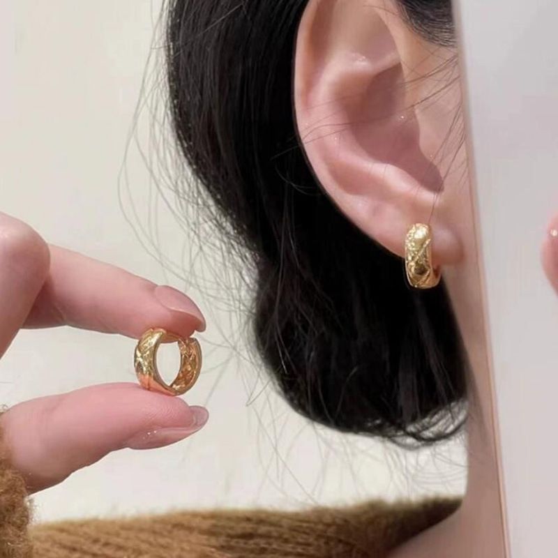 Quilted Earrings High-End Feel for Women Light Style Ear Cuffs Elegant Metal Gold Hoops
