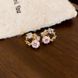 Vintage Earrings with Silver Studs and Inlaid Diamonds, Flower Metal Studs, High-End Earrings