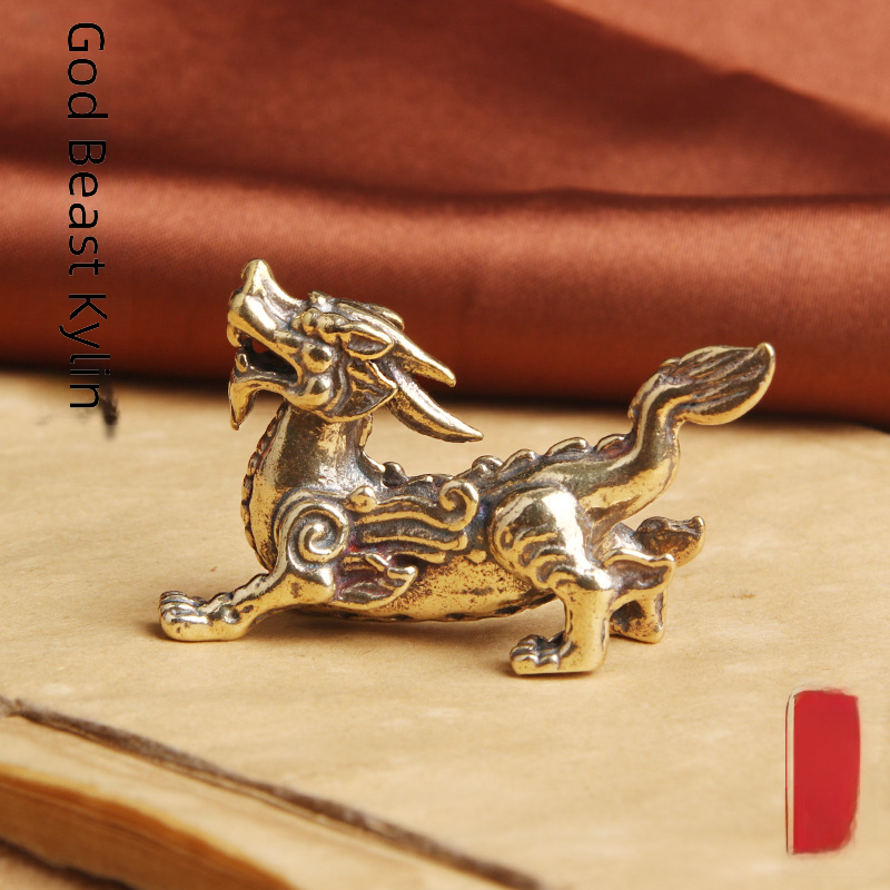 Ornamenti da tavolo in ottone puro, Dio Bestia Kirin, casa di città, fortuna, Nafrui, bestia, ornamenti in bronzo antico all'ingrosso
