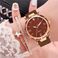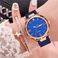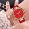 Orologi da donna Orologi da donna in polvere d'argento di vendita calda con cinturino in pelle con quadrante digitale Orologio da donna in due pezzi Set di bracciali a stella a cinque punte Orologio al quarzo da donna