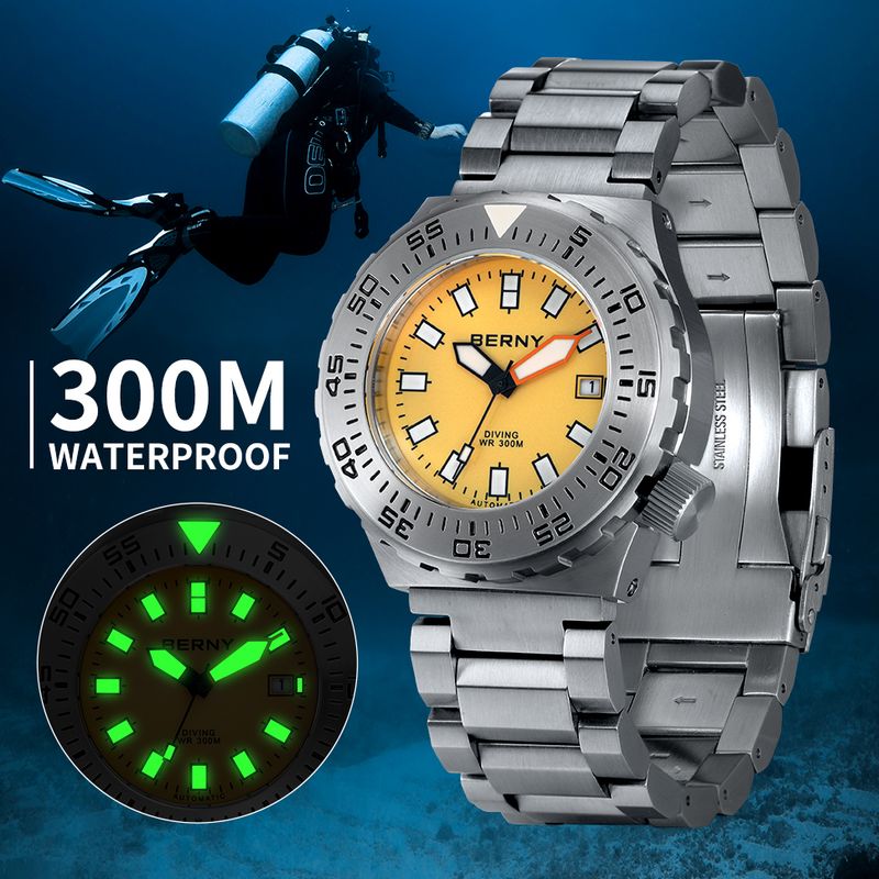 Orologi subacquei automatici BERNY da uomo, impermeabili fino a 30 ATM, super luminosi, analogici, meccanici, con data, in acciaio inossidabile e zaffiro, orologio subacqueo professionale da uomo_voghion.com