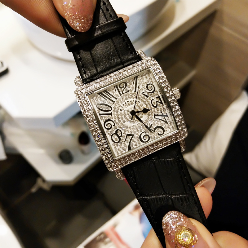 Orologio al quarzo da studente di moda versatile con scala digitale da donna quadrata piena di diamanti colorati