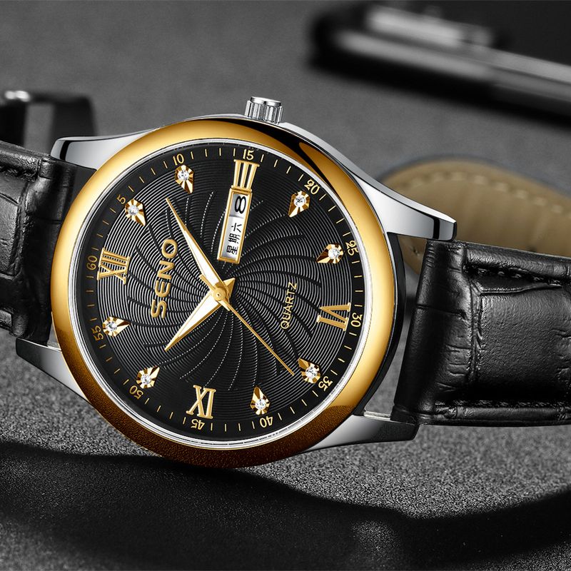 Orologio al quarzo da uomo, completamente automatico, luminoso, impermeabile, con doppio calendario, stile coreano, casual, con cinturino in pelle