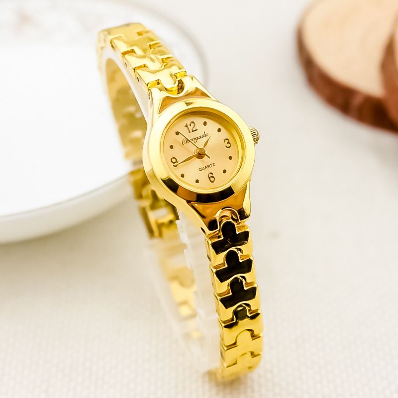 Orologio compatto in oro per donna, quadrante piccolo, studente, tendenza moda, semplice ed elegante, orologio da polso al quarzo con bracciale