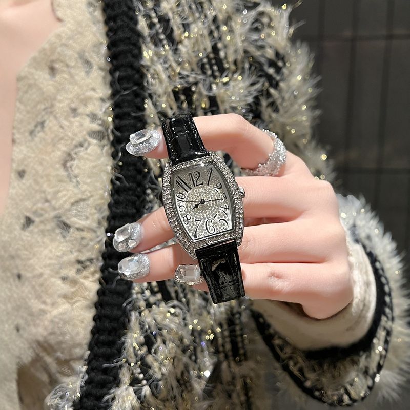 Orologio da donna a forma di barile con quadrante piccolo, alla moda, leggero, squisito, compatto, tempestato di diamanti