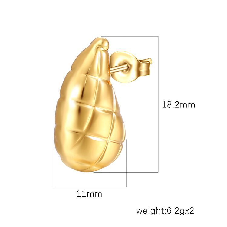 European And American Fashion Versatile High-End Grid Pattern Solid Water Drop Trendy Women's Gold Stainless Steel