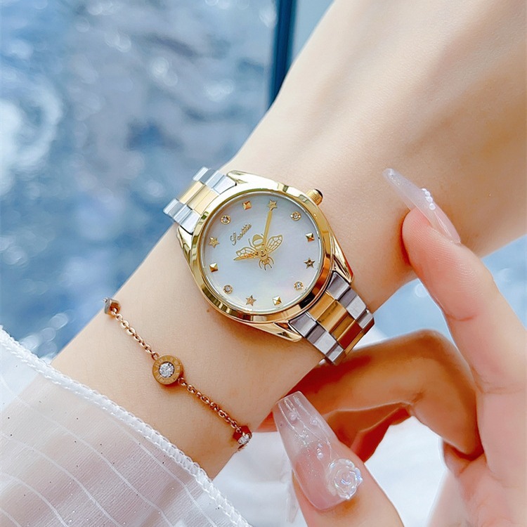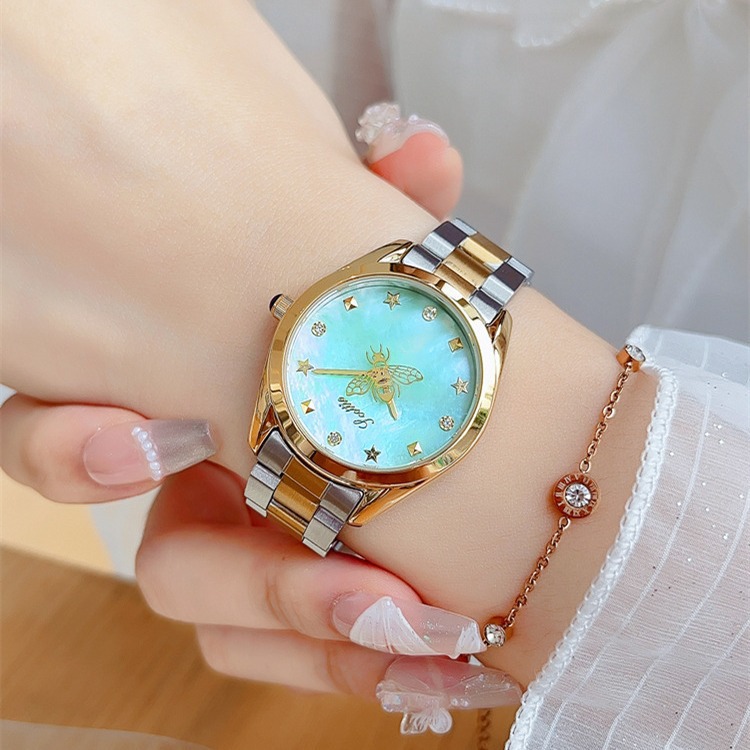 Orologio da donna Scottie New Fashion con cinturino in acciaio girevole Little Bee, quadrante in madreperla e lancetta dei secondi, 9595D