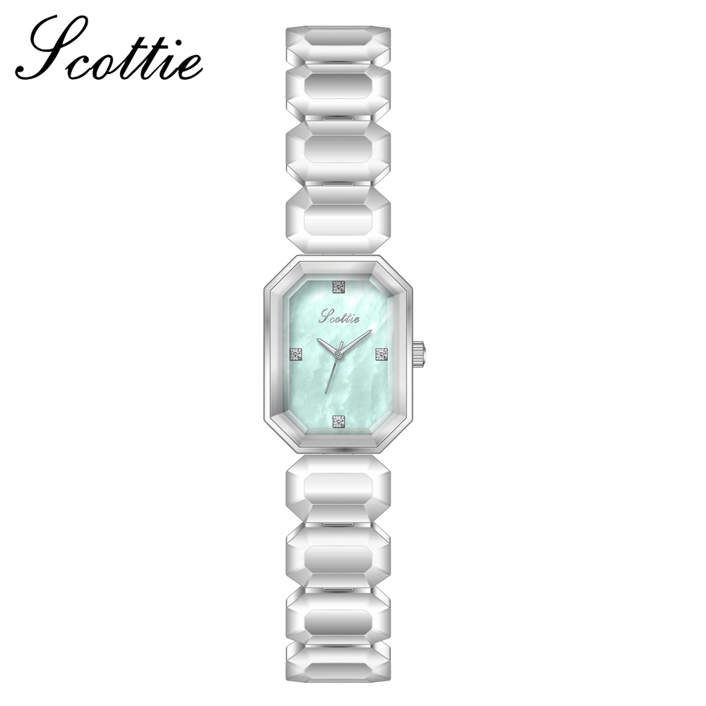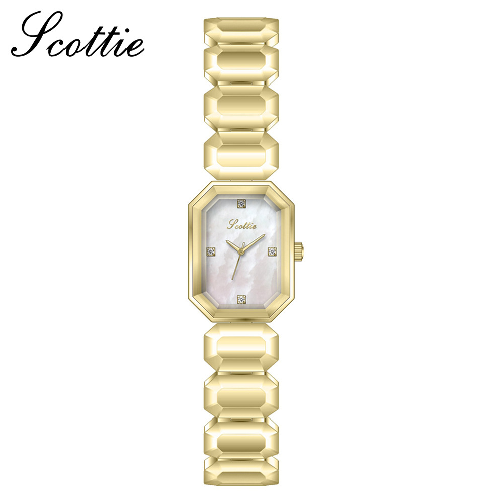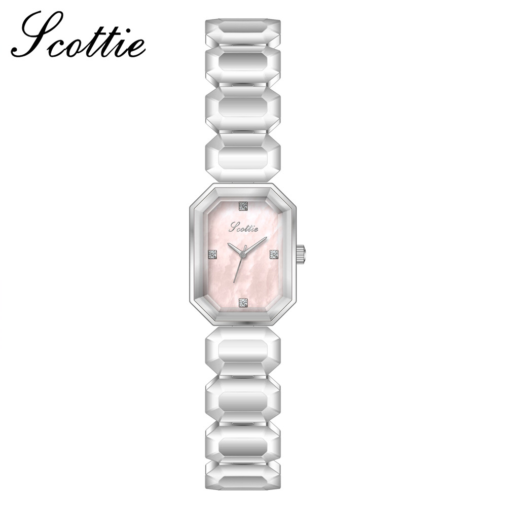 Orologio da donna Scottie Square con quadrante in madreperla e catena, cinturino piccolo a cubetti di zucchero, modello di fascia alta per streaming live